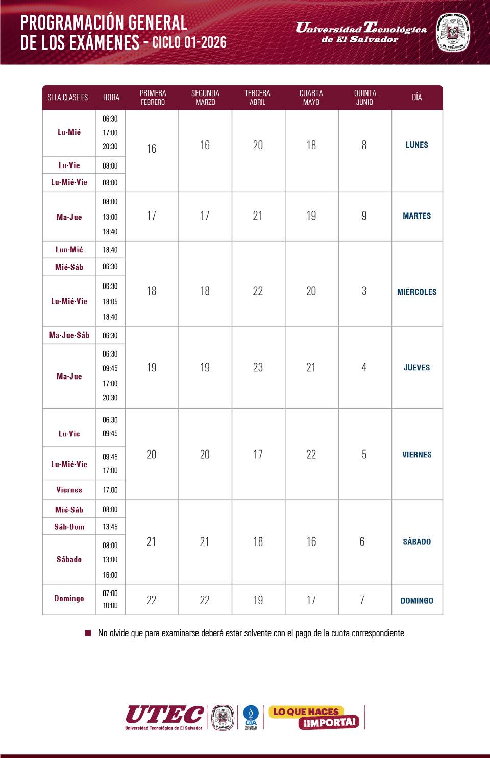 Pago de examen diferido, en lÃnea, mediante PayWay. Carreras presenciales