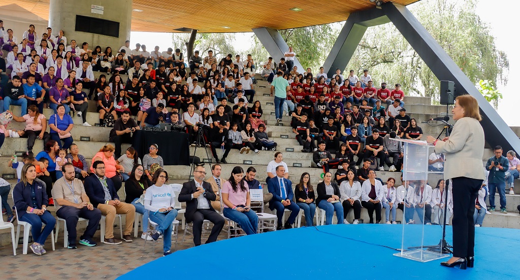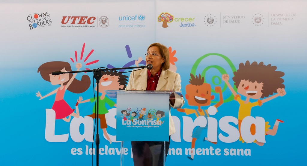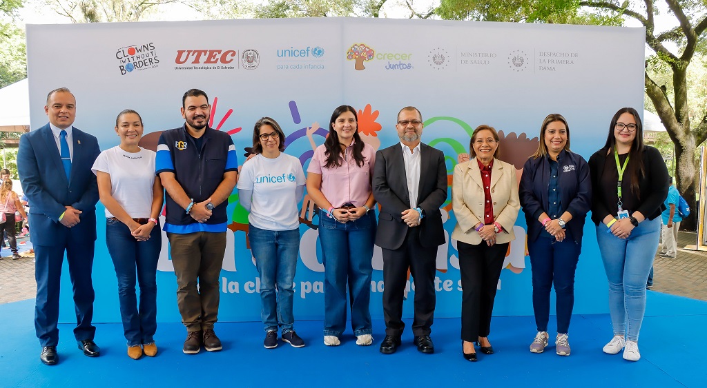 La actividad contó con la presencia de Carlos Alvarenga, viceministro de Gestión y Desarrollo en Salud; Elisa Gamero, jefa de Proyectos de Salud y Nutrición del Despacho de la Primera Dama; Victoria Colamarco, representante de UNICEF en El Salvador; y la Mtra. Ana Arely de Parada, decana de la Facultad de Ciencias Sociales de la UTEC.