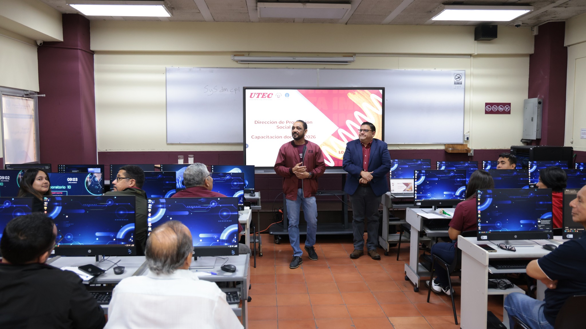 La Universidad Tecnológica de El Salvador (UTEC), a través de su Vicerrectoría de Investigación y Proyección Social, junto con la Dirección de Proyección Social, reunió a docentes de las diferentes facultades de esta universidad para realizar la Capacitación de Proyección Social, correspondiente al ciclo 01-2026.
