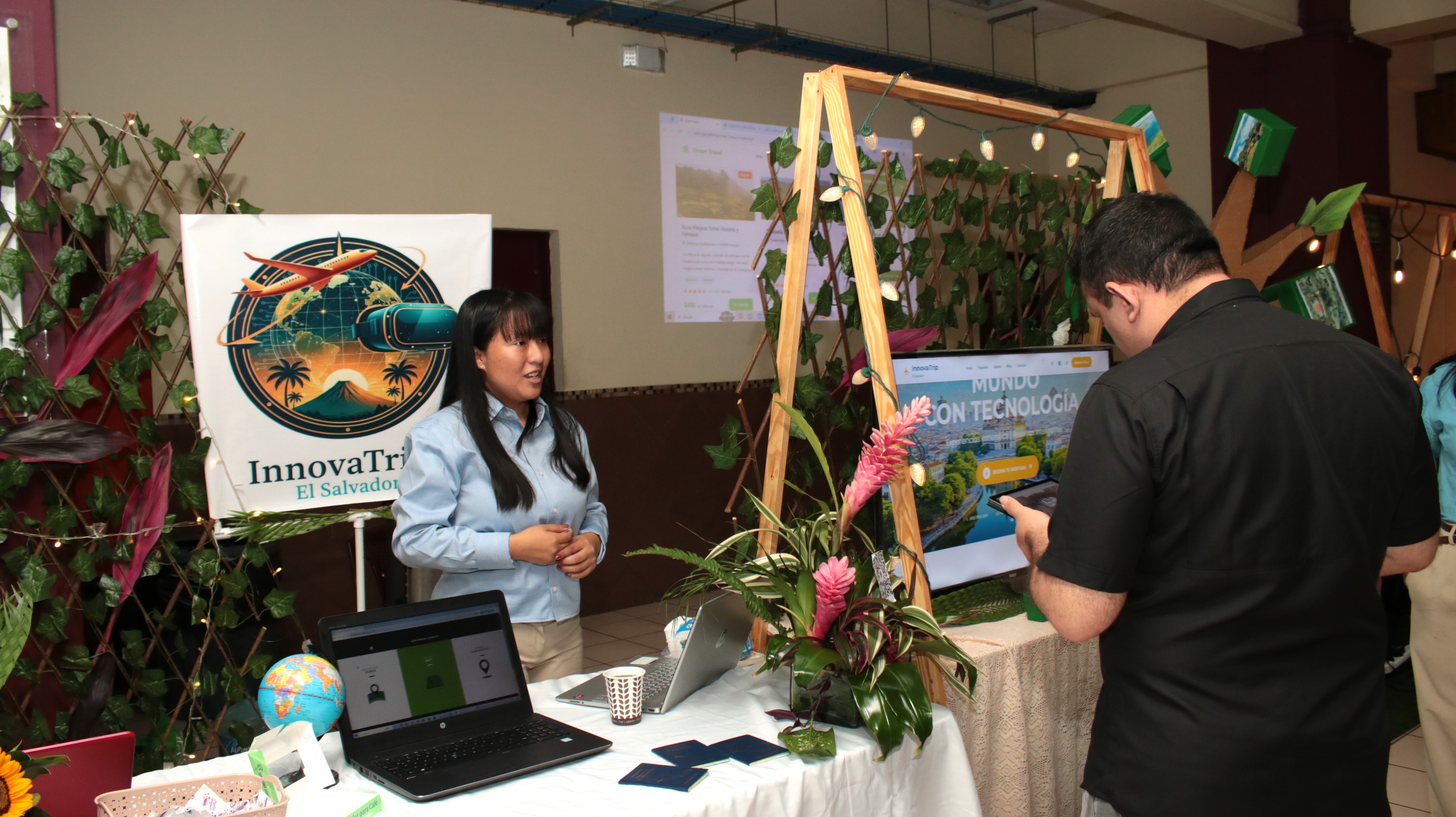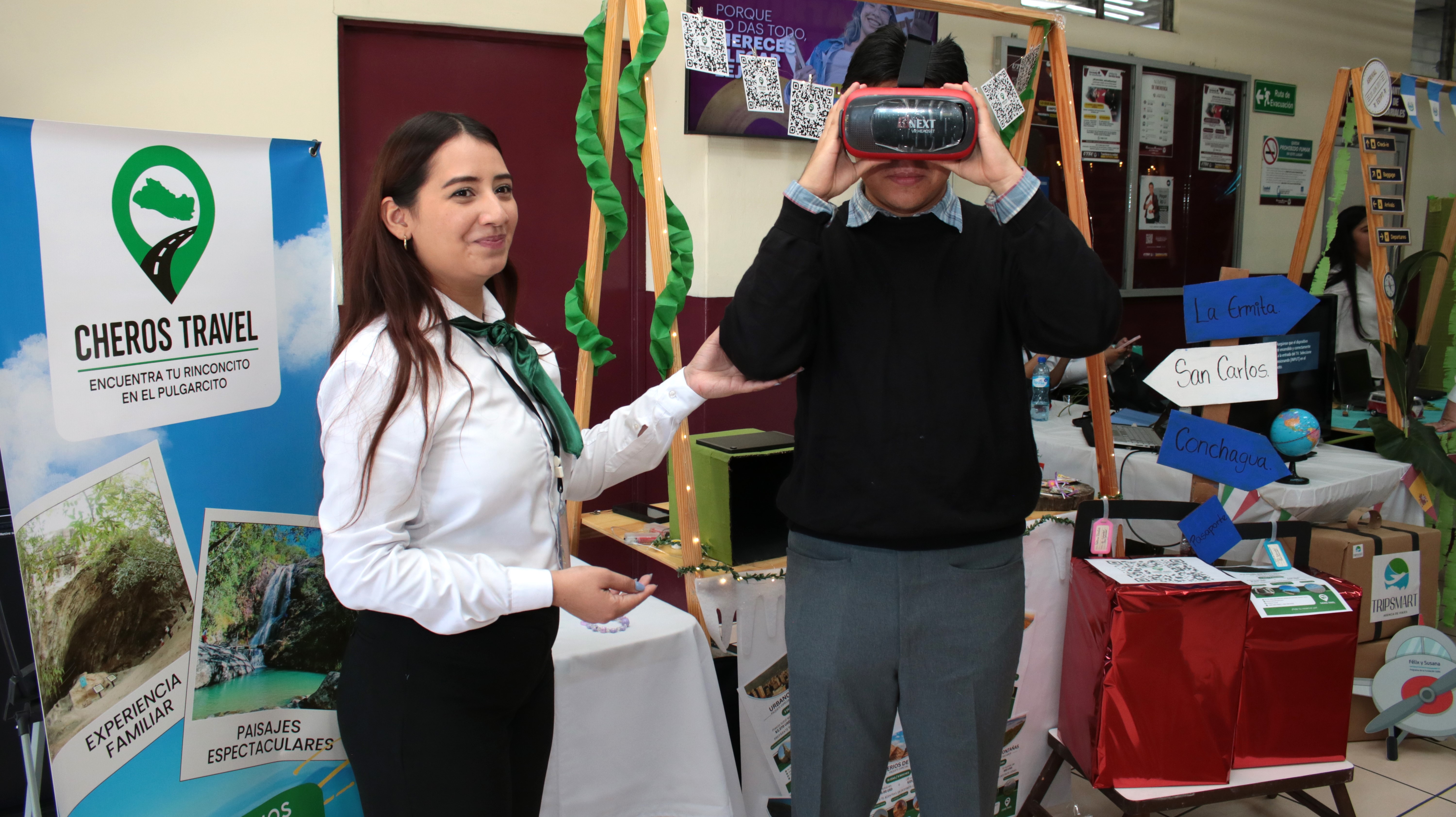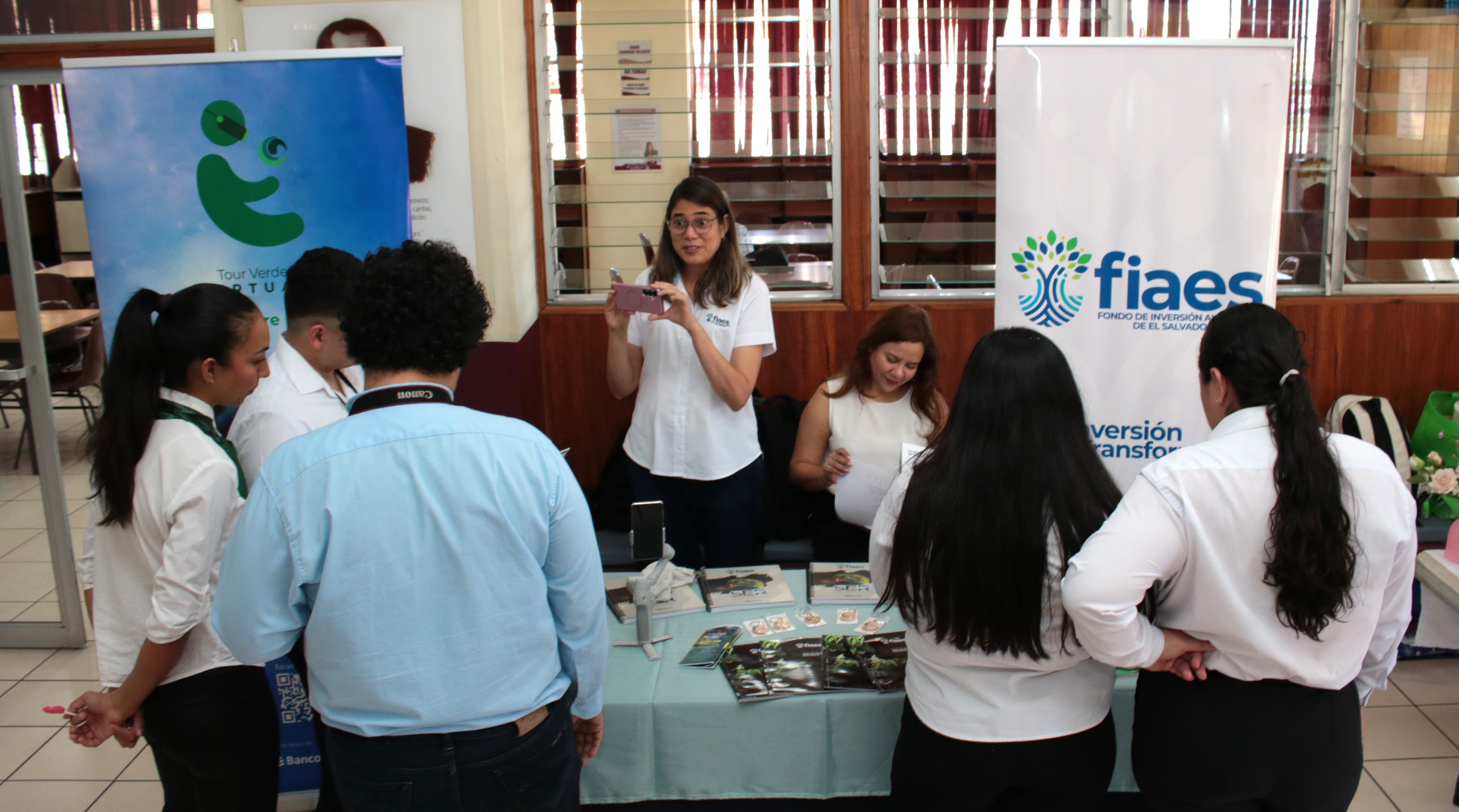La jornada contó con la participación de especialistas del Fondo de Inversión Ambiental de El Salvador, FIAES, y con la exposición de seis proyectos de agencias de viajes desarrollados por estudiantes, quienes presentaron destinos turísticos inteligentes mediante lentes de realidad virtual aumentada proporcionados por FIAES.