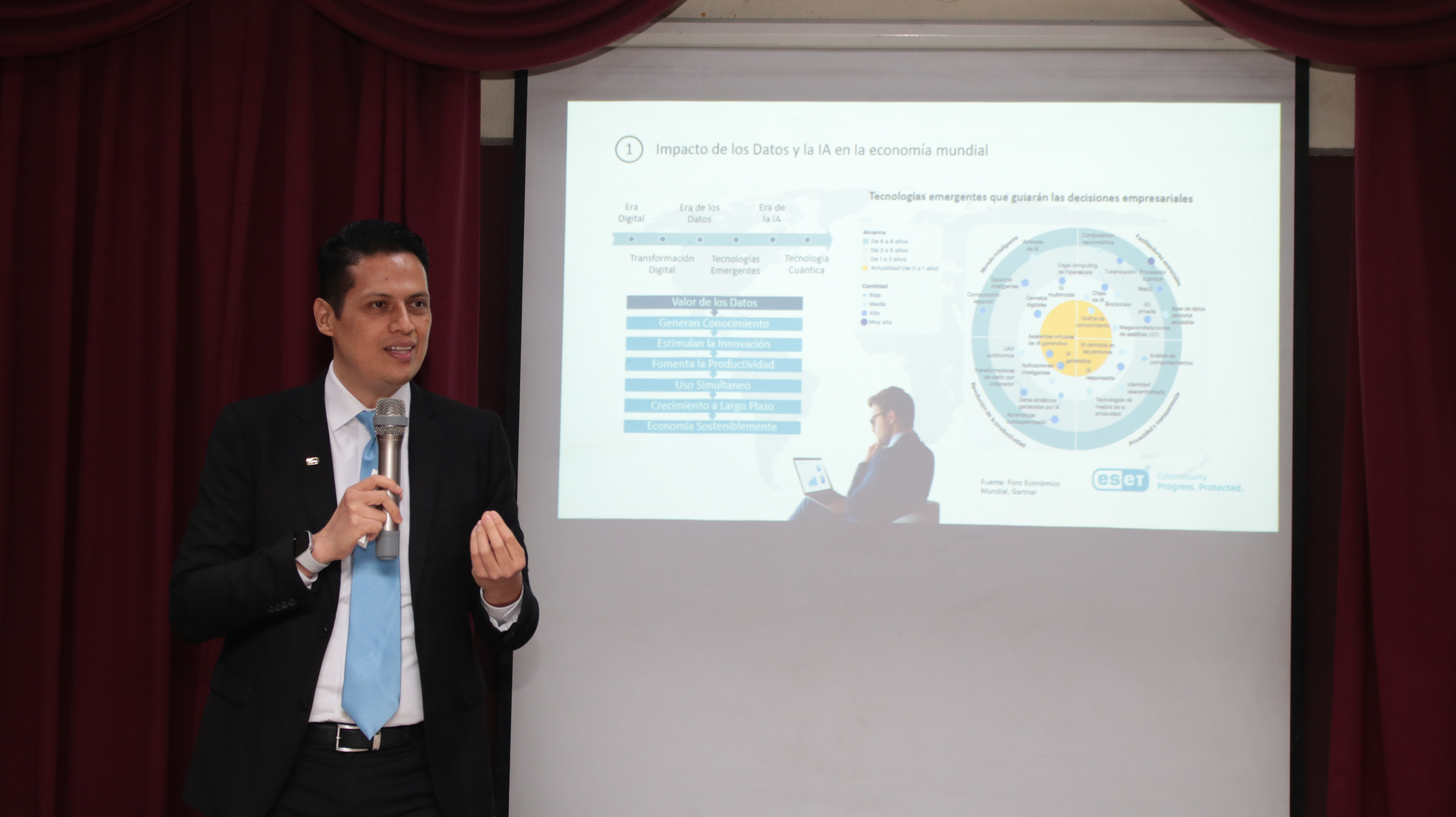 En el cierre del VI Congreso de Innovación y Emprendimiento, CIE 2025, desarrollado bajo el lema “Tecnología e innovación con propósito”, la Facultad de Informática y Ciencias Aplicadas llevó a cabo la ponencia “Economía de los datos, IA y ciberseguridad”, impartida por el doctor José Antonio González, con el objetivo de sensibilizar a los estudiantes sobre el uso responsable de la tecnología en su desarrollo profesional.