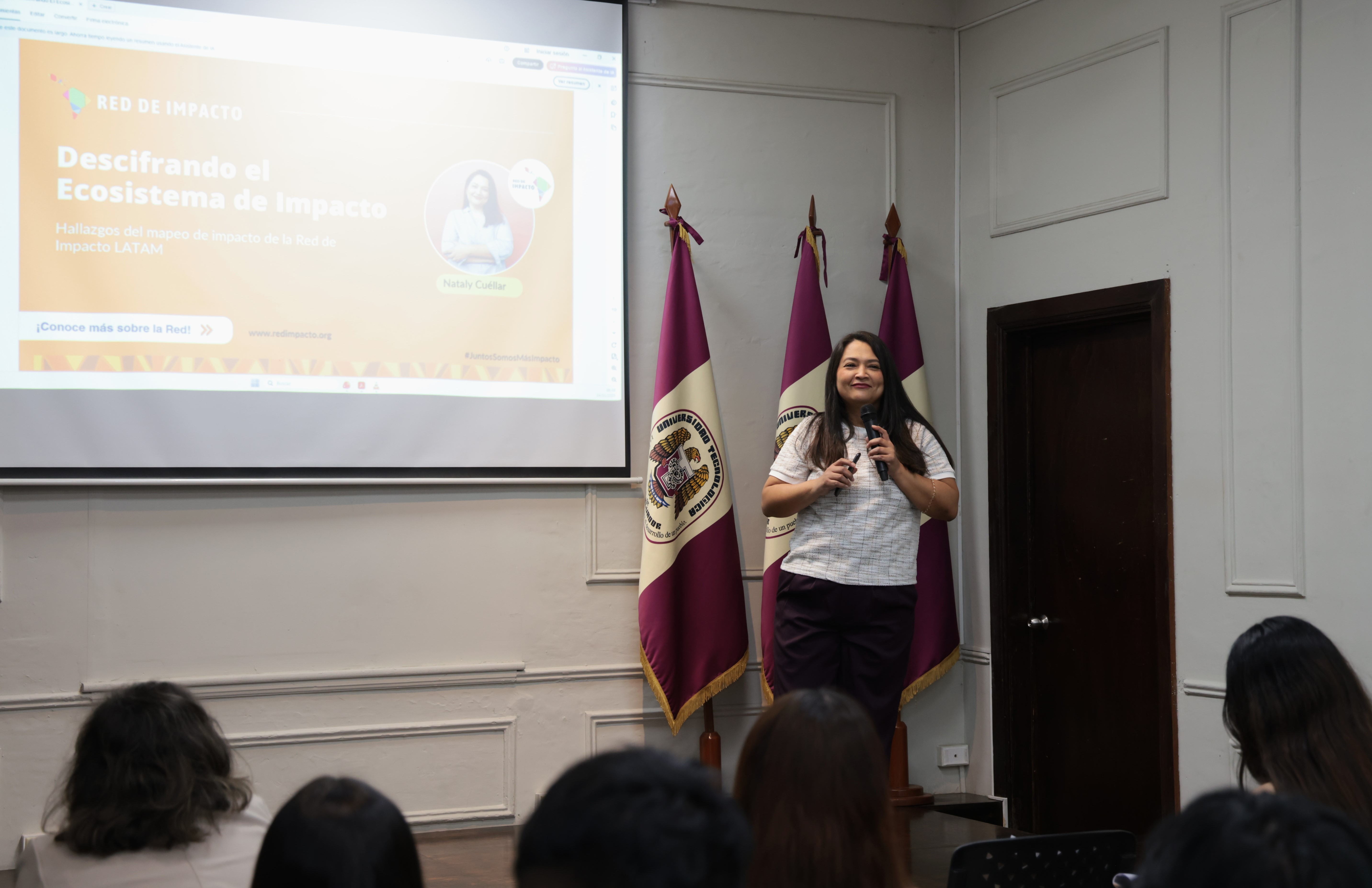 En este foro se desarrollaron diversas temáticas de interés para la comunidad universitaria. La jornada inició con la ponencia “Descifrando el ecosistema de impacto”, a cargo de la maestra Nataly Cuéllar, representante de la UCA y Red de Impacto LATAM.
