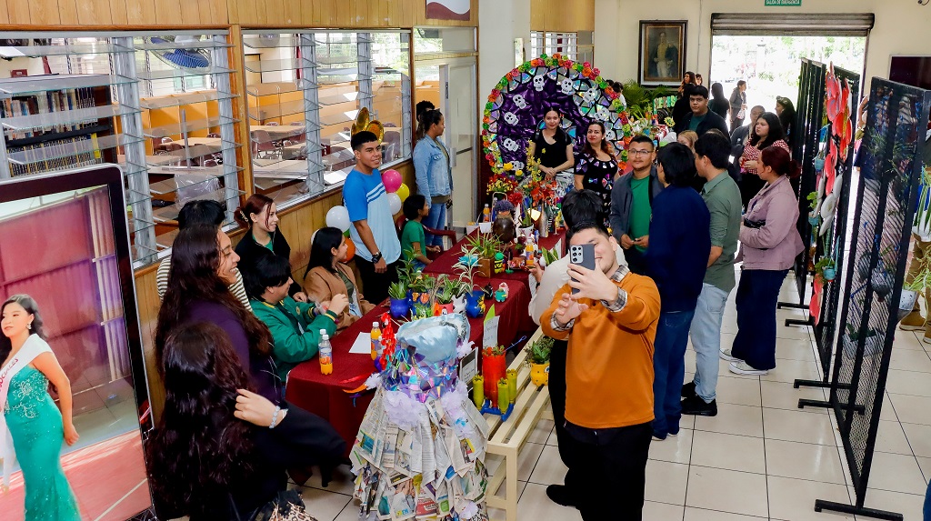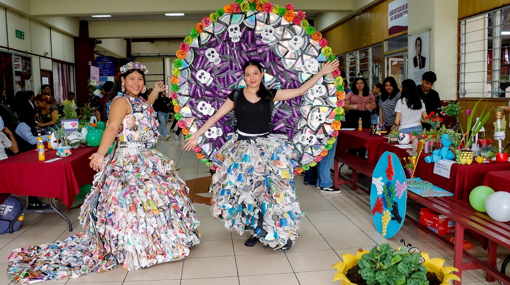 Como parte de la jornada, se realizó una feria de presentación de trabajos elaborados con material reciclable en los pasillos del edificio Simón Bolívar, donde estudiantes de esta universidad mostraron su creatividad y compromiso con el medioambiente.