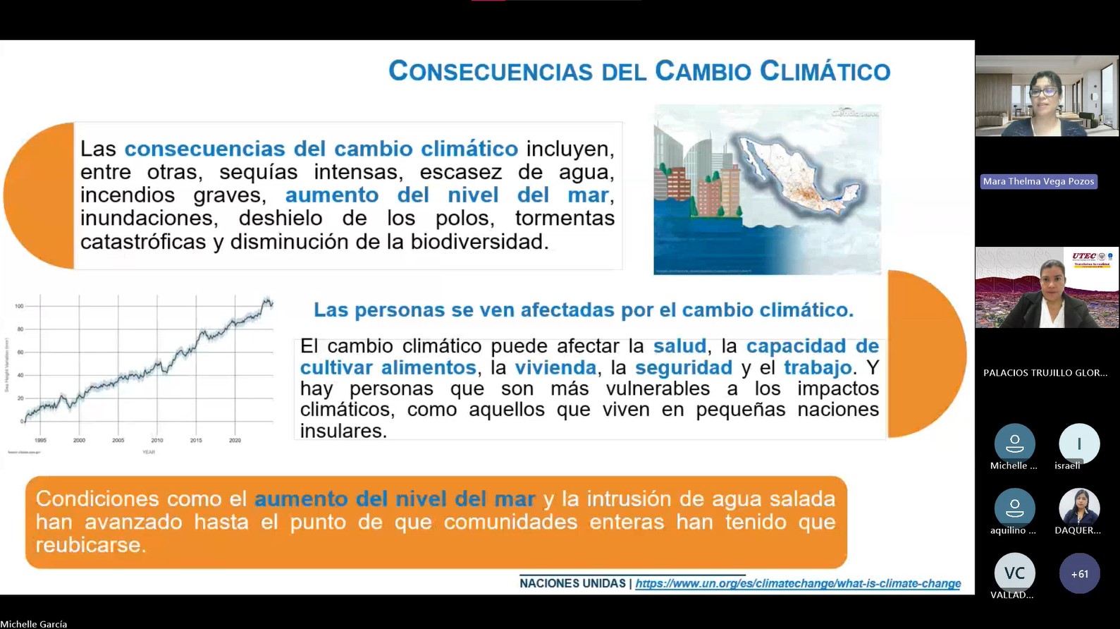 Posteriormente, se presentó la ponencia “Desplazamiento climático: el bosque de Sentla”, a cargo de la Dra. Mara Thelma Vega, presidenta de la Asociación Internacional de Mujeres Iusambientalistas, IMI.