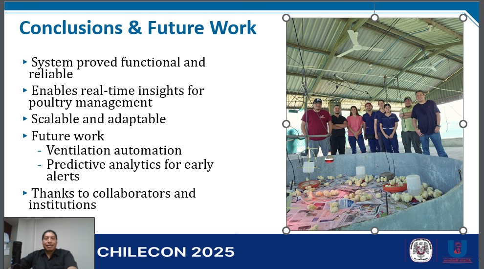 El Mtro. Omar Otoniel Flores Cortez, investigador de la UTEC, participó en el Chilecon 2025, The Chilean Conference on Electrical, Electronic Engineering, Informatics and Communications Technology, organizada por la Pontificia Universidad Católica de Valparaíso, Chile. Durante su intervención presentó la conferencia “IoT for Data Collection and Analysis: A Case Study in Poultry Farms”, en la que compartió los resultados de su investigación, destacando el aporte de la tecnología IoT en la recolección y análisis de datos aplicados al sector avícola.
