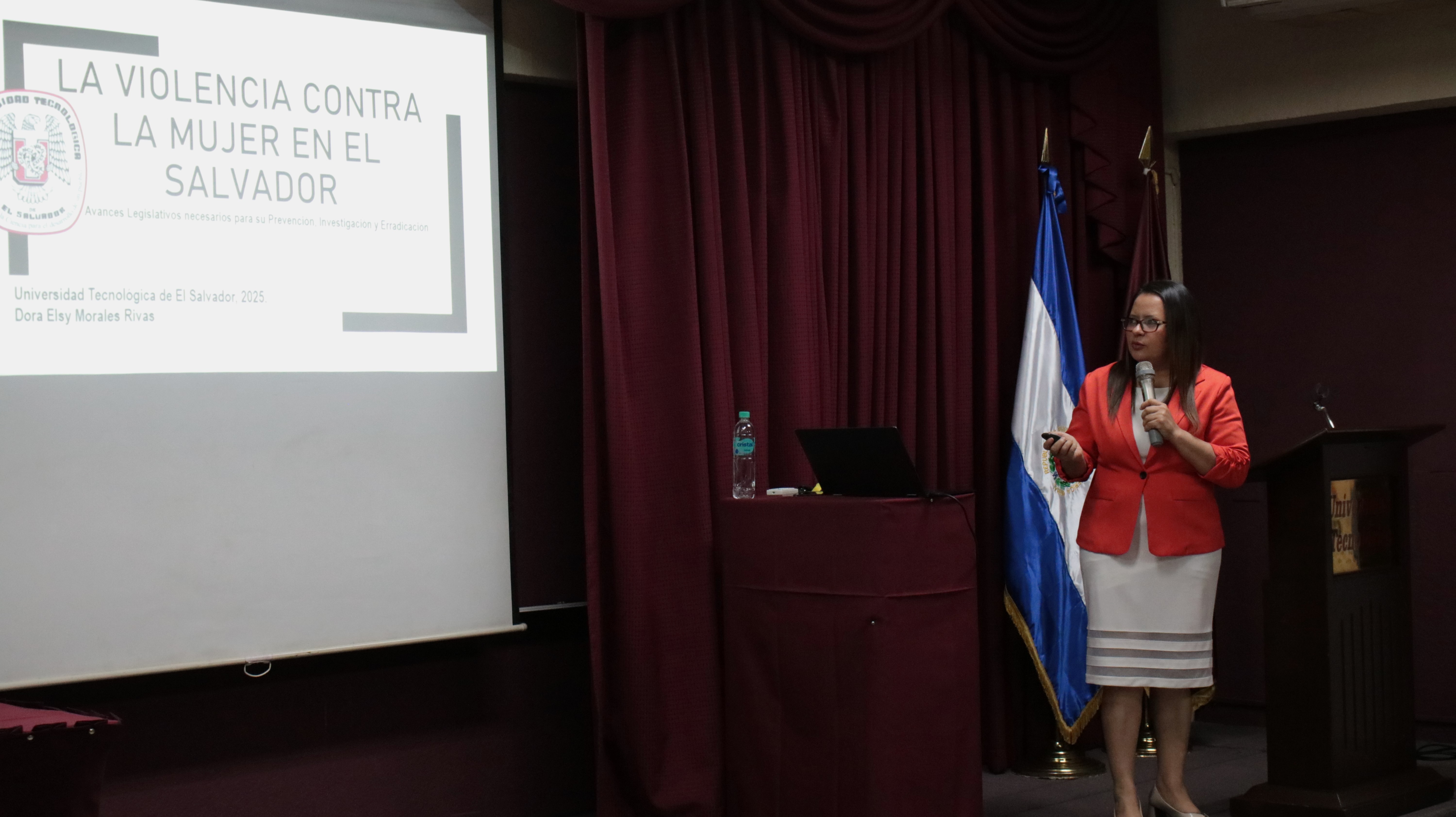 En la tercera jornada de la Semana Conmemorativa del Día Internacional de la Eliminación de la Violencia contra la Mujer, la Facultad de Ciencias Sociales de la UTEC y su Cátedra de Género llevaron a cabo la conferencia “La violencia contra la mujer en El Salvador: avances legislativos necesarios para su prevención, investigación y erradicación”, impartida por la licenciada Dora Elsy Morales, jueza especializada del Juzgado Primero de Instrucción para una Vida Libre de Violencia y Discriminación para las Mujeres de San Salvador.