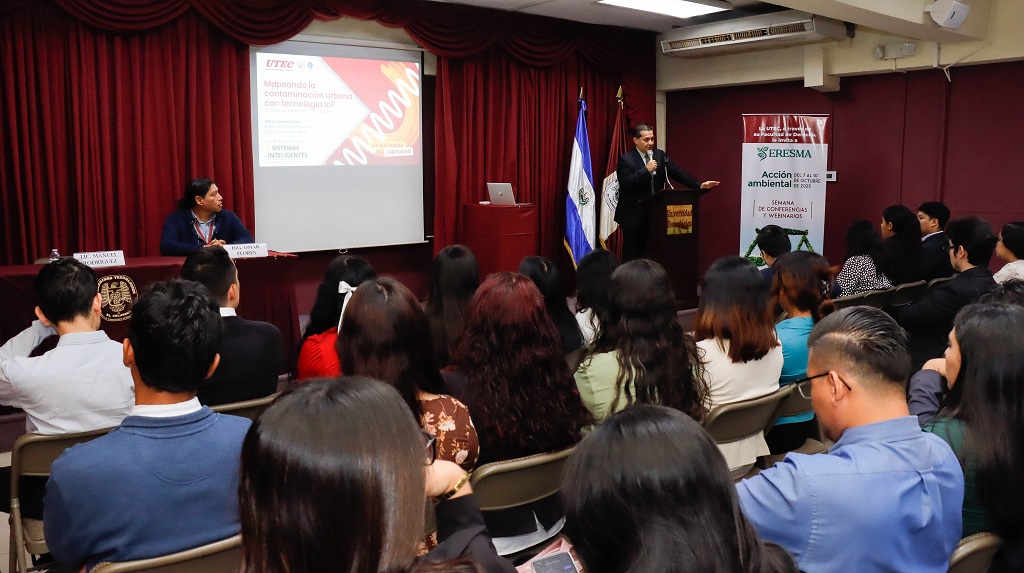 En el marco de la Semana de Responsabilidad Legal con el Medioambiente, SERESMA, la Facultad de Derecho de la UTEC desarrolló su tercera jornada con la conferencia “Mapeando el ruido urbano con tecnología IoT: un caso en San Salvador”, impartida por el ingeniero Omar Otoniel Flores, docente e investigador de esta universidad.