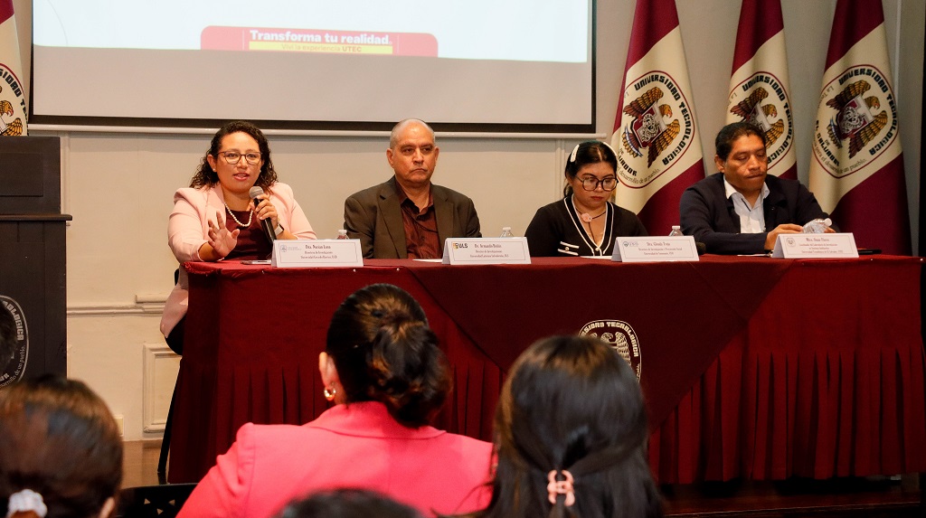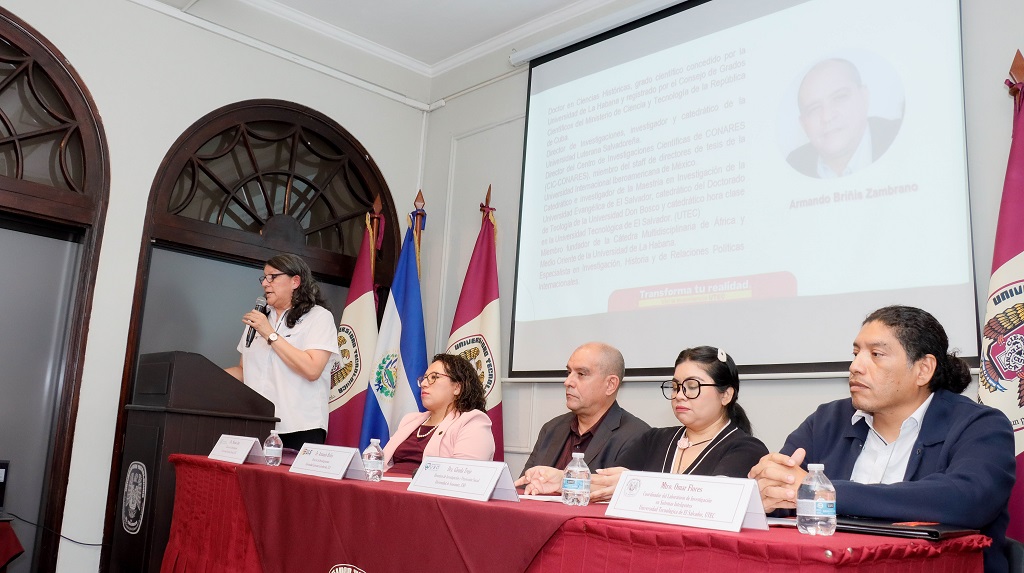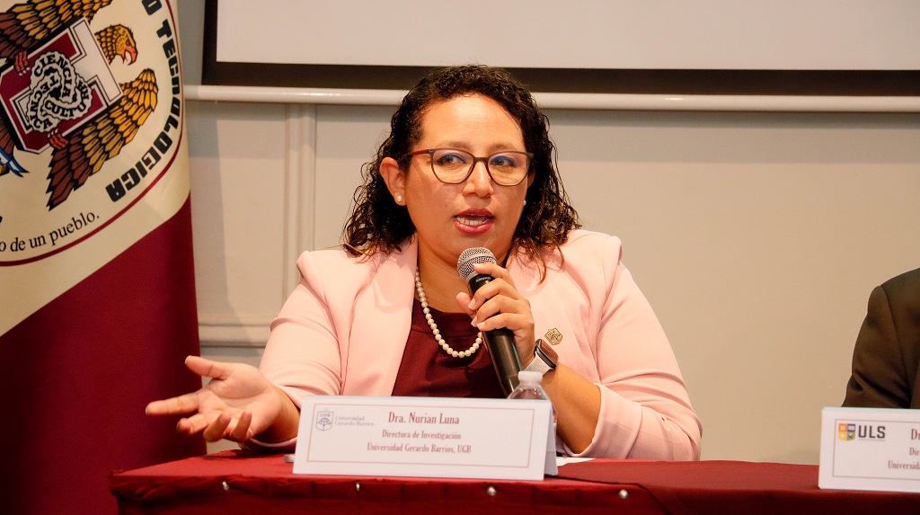 El espacio contó con la participación de la Dra. Nurian Luna, directora de Investigación de la Universidad Gerardo Barrios, UGB; el Dr. Armando Briñis, director de Investigaciones de la Universidad Luterana Salvadoreña, ULS; la Dra. Glenda Trejo, directora de Investigación y Proyección Social de la Universidad de Sonsonate, USO; y el Mtro. Omar Flores, coordinador del Laboratorio de Sistemas Inteligentes de esta universidad. Como moderadora participó la Dra. Camila Calles, directora de Investigaciones de la UTEC.