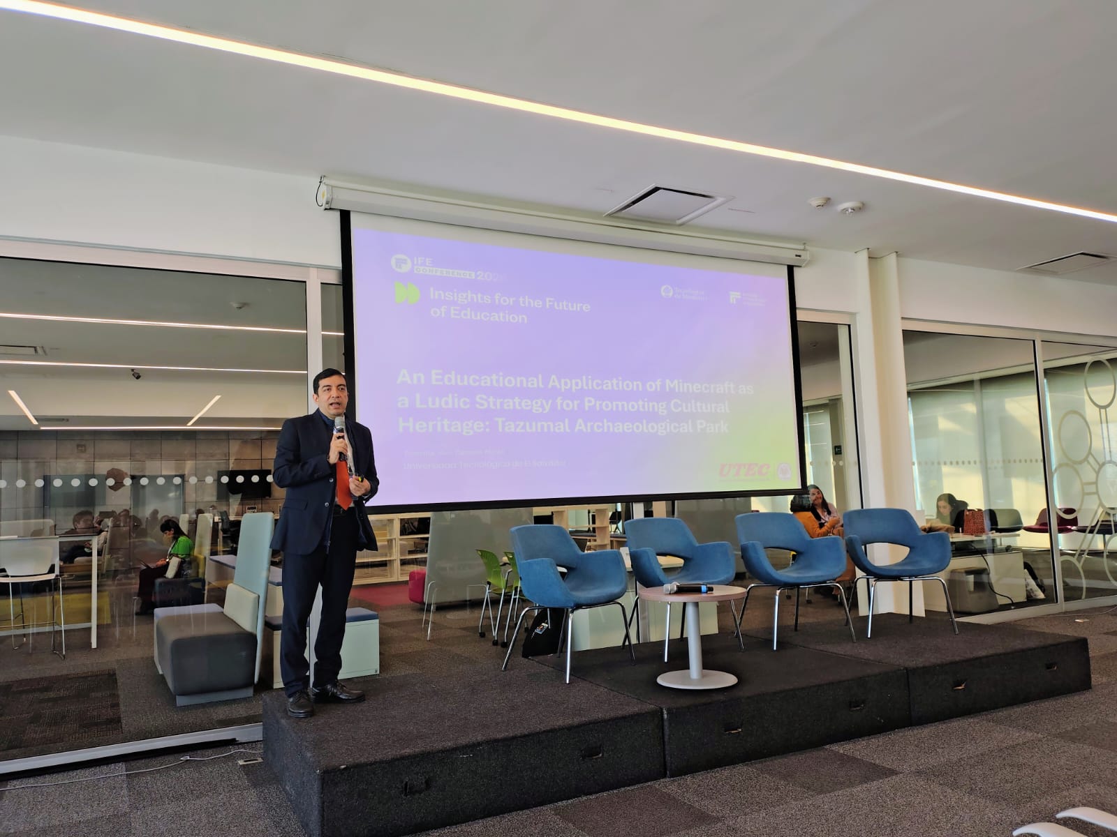 Durante el encuentro, presentó la ponencia “An Educational Application of Minecraft as a Ludic Strategy for Promoting Cultural Heritage: Tazumal Archaeological Park”, en la que expuso el uso de estrategias lúdicas y entornos digitales para la enseñanza y la promoción del patrimonio cultural, fortaleciendo la proyección académica e investigativa de la UTEC a nivel internacional.